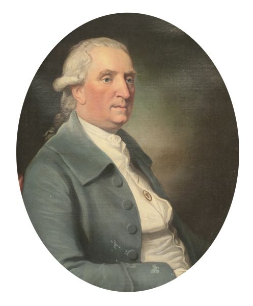 | PORTRAIT OF JOHN DOWNES OF POTT SHRIGLEY HALL, CHESHIRE (b.1723), HALF LENGTH SEATED, IN A BLUE COAT | |