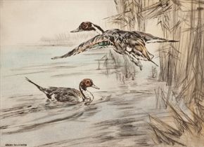 MALLARDS IN FLIGHT and STUDY OF DUCKS