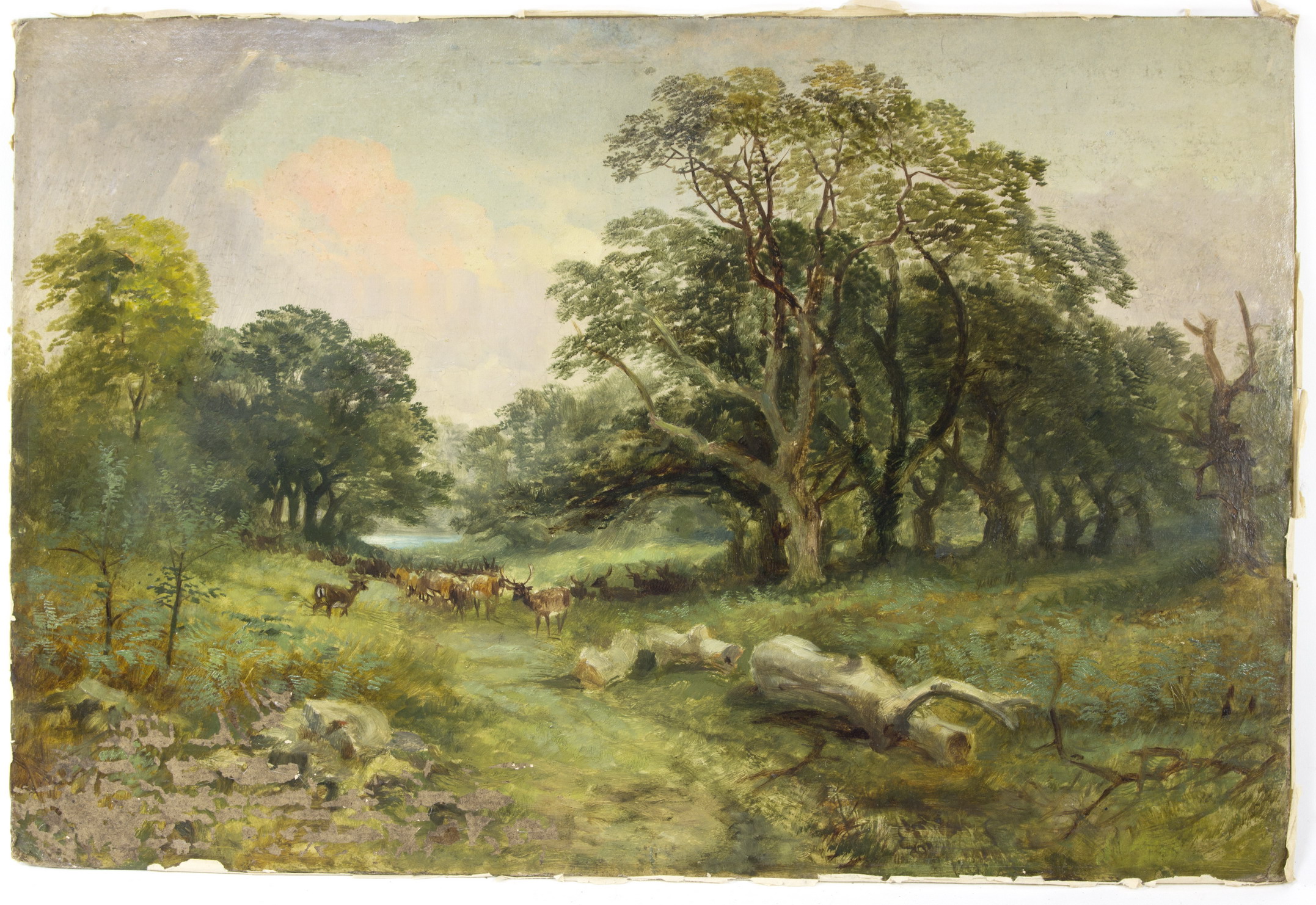 Herd of Deer Beneath Oaks in a Park