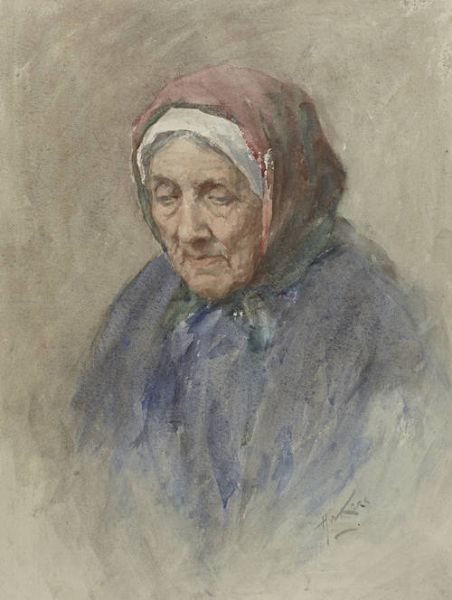 Old woman in red headscarf