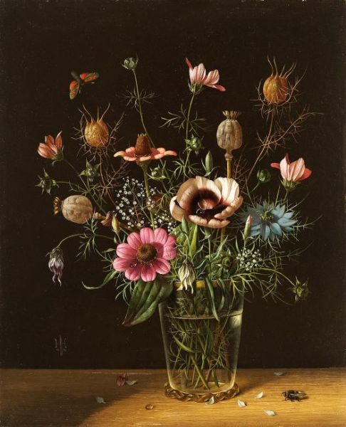 Blumenstilleben mit Fliege und Falter.