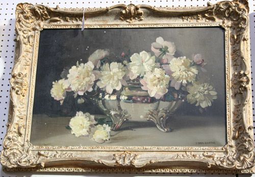 | 'Silver Grey' (Still Life Study of Pale Pink and Cream Peonies in a Silver Tureen) | |
