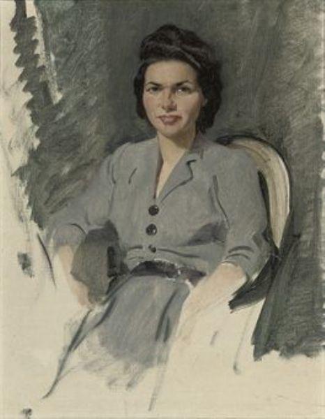 | Study of Elizabeth, seated three-quarter-length, in a grey-blue dress | |