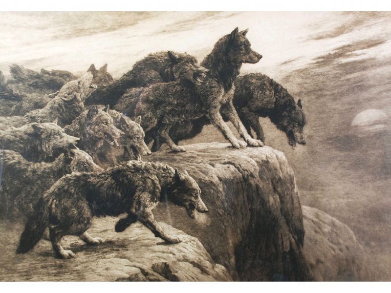 Pack of Wolves on rocky outcrop