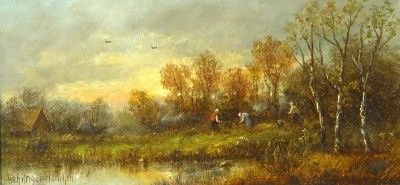 Herbstlandschaft/Am frühen Abend/Frauen beim Kräutersammeln.