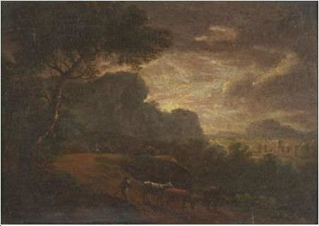 | A SHEPHERD AND FLOCK ON A WOODED COUNTRY PATH BY MOONLIGHT | |