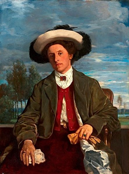 Portrait de femme au chapeau dans un paysage