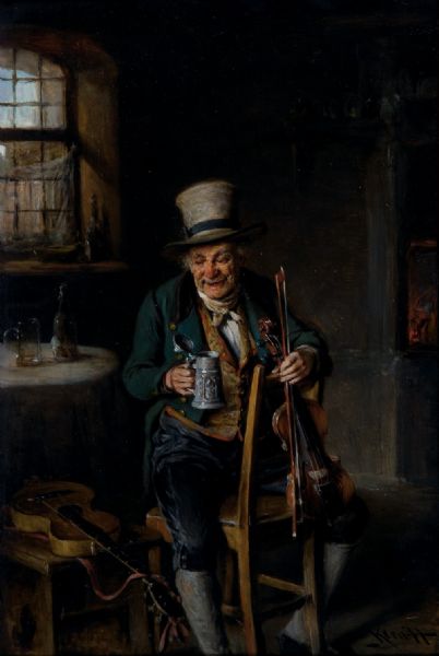 | Geigenspieler im Wirtshaus. Blick in das Interieur eines Wirtshauses. | |