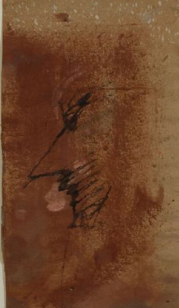 Spitzes Profil nach links, schwarz vor braunem Grund. 1963.