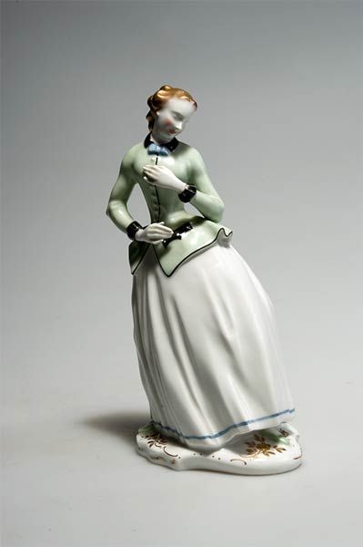 | Porcelain white, glazed with overglazing in green, black and blue, with gold | |
