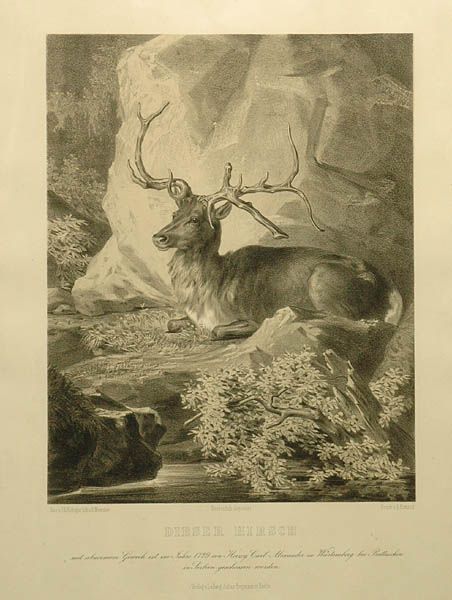 Jeleń na tle skały
