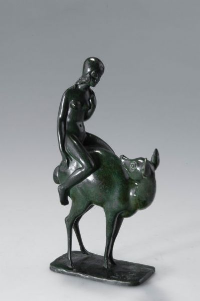 Mädchen, auf Reh reitend