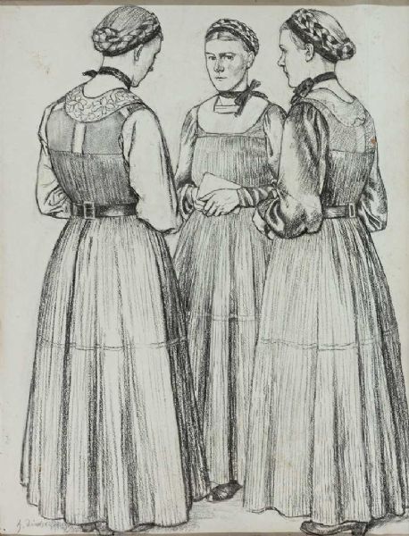 Portrait dreier Mädchen in Tracht.