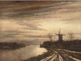 A Dutch canal town at dusk