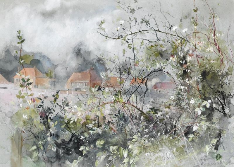 HEDGE WITH HONEYSUCKLE; SURREY LANDSCAPE