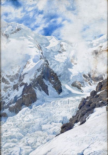 Mountain scene with climbers in the foreground