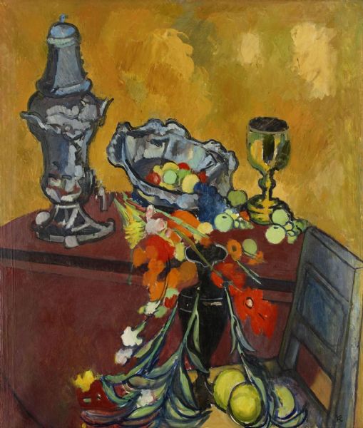 Nature morte med tennfat och frukt
