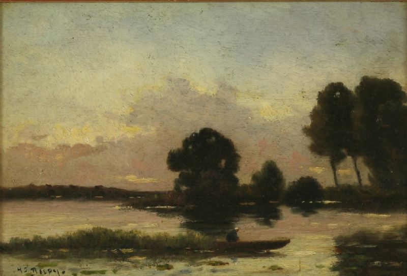 A RIVER LANDSCAPE WITH A FIGURE IN A PUNT