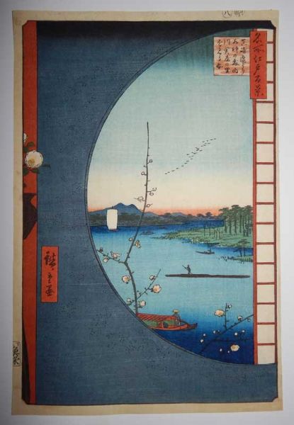 Massaki atari yori Suijin no mori Uchigawa Sekiya no sato wo miru zu