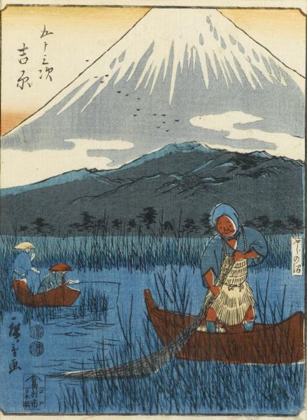 YOSHIWARA; FISHERMAN AND MOUNT FUJI; BEAUTIES IN THE SNOW AT FUSISANA