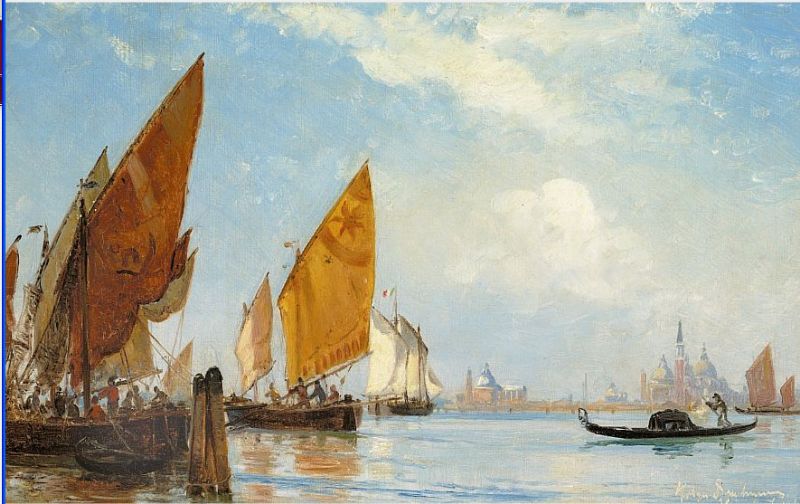 | Fishing vessels and gondola in the Venetian Laguna | |