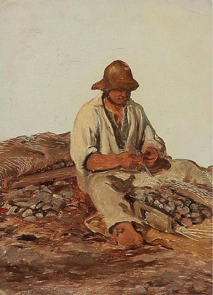 A fisherman fixing his fishing net