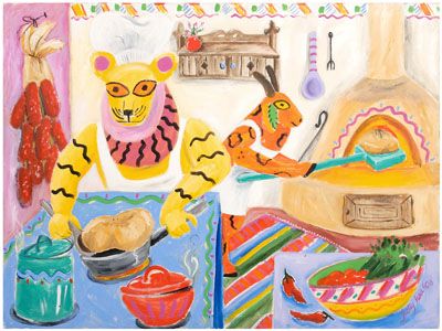 Southwestern kitchen with tiger chef