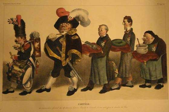 | CORTÈGE / DU COMMANDANT GÉNÉRAL DES APOTHICAIRES… (La Caricature, pl. 299-300). 1833. | |