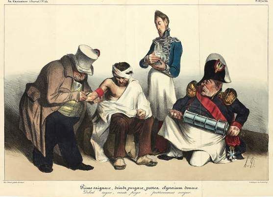 | PRIMO SAIGNARE, DEINDE PURGARE… (La Caricature, pl. 337-338). 1833. | |