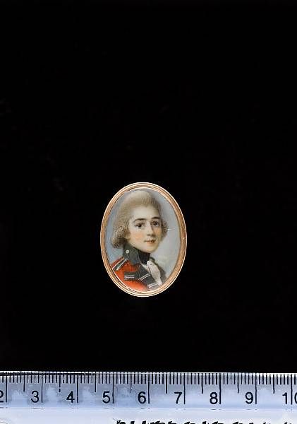 An Officer, wearing scarlet coatee with green facings and shoulder strap