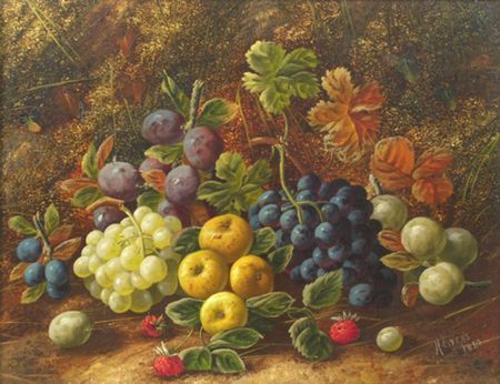 STILL LIFE OF FRUIT ON A MOSSY BANK