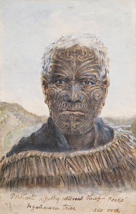 Portrait a fully tattooed Chief 'PAORA' Ngatimaru Tribe