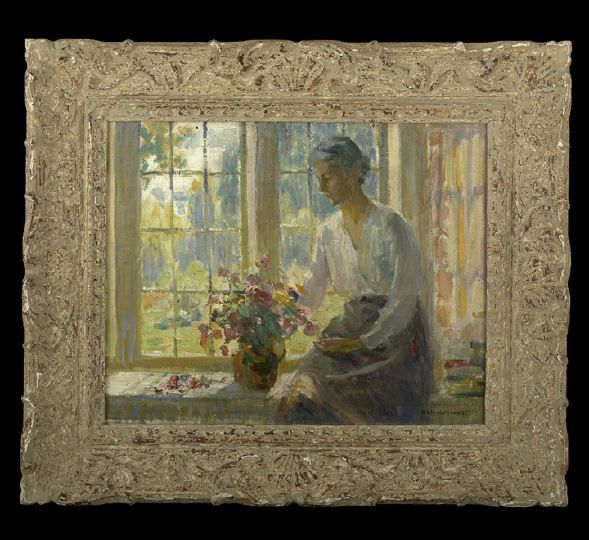 | Woman Seated by a Window Arranging Flowers | |