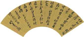 | Ink Fan leaf, mounted and framed, ink on gold paper | |