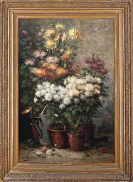 Chrysanthemums potted in the garden
