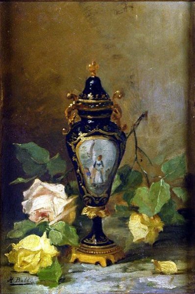 Nature morte au Vase en Sèvres et aux Roses blanches
