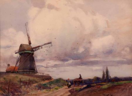 Figures, Horse and Cart in Country Track by a Windmill
