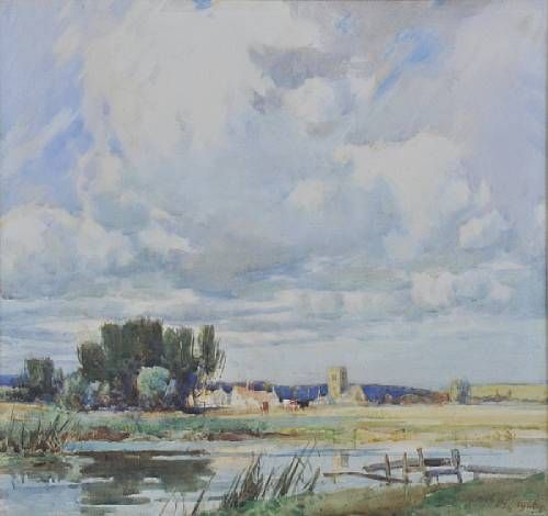 River landscape with village beyond
