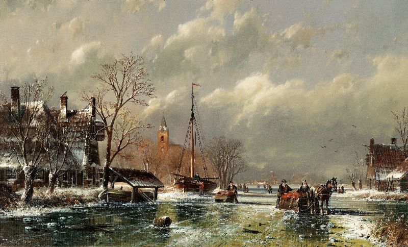 | Holländische Winterlandschaft'. Eisvergnügen in feiner altmeisterlicher Manier. | |