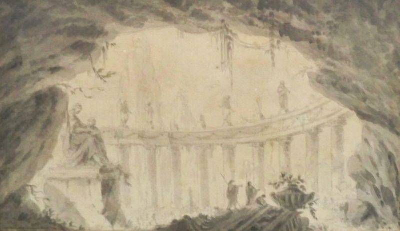 Capriccio of Figures in a Grotto with Sculpture and a Curved Colonnade