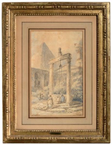 | Caprice romain avec la pyramide de Cestius, le panthéon et la basilique St Pierre | |