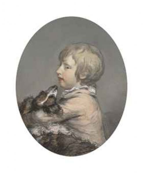 Portrait of William Evelyn (circa 1768-1789) of St Clere, Kent, half-length, holding a spaniel