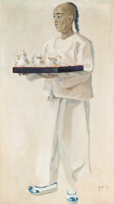 Chinese servant with a serving tray