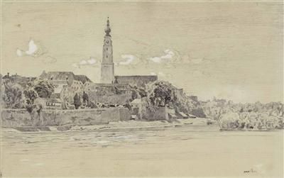 | Die Pfarrkirche von Braunau mit Häusern am Inn | |
