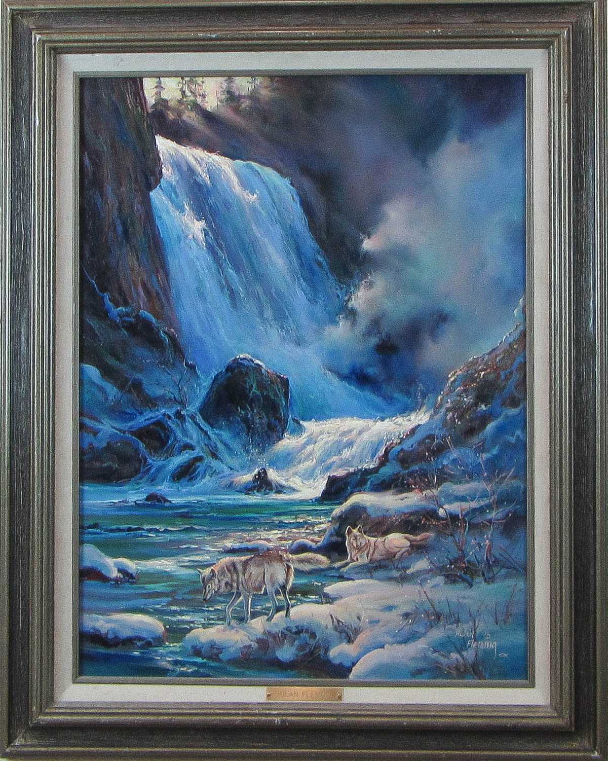 | "Sounds of Spring," wolves near the bottom of a waterfall | |