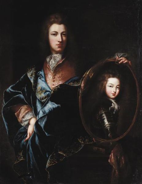 | Portrait of a Member of the French Court Holding a Portrait of Louis XV | |