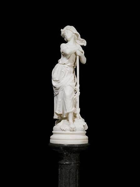 A white marble sculpture of a young peasant girl resting