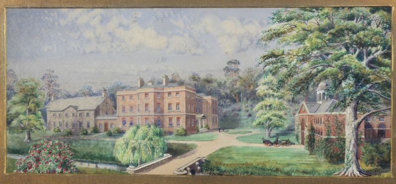 | a good study of a country house with figures and a carriage and horses in an extensive landscape | |