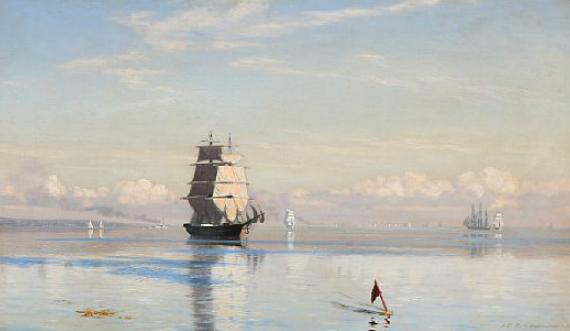 | Stille morgen i Sundet. A quiet morning on the sea | |