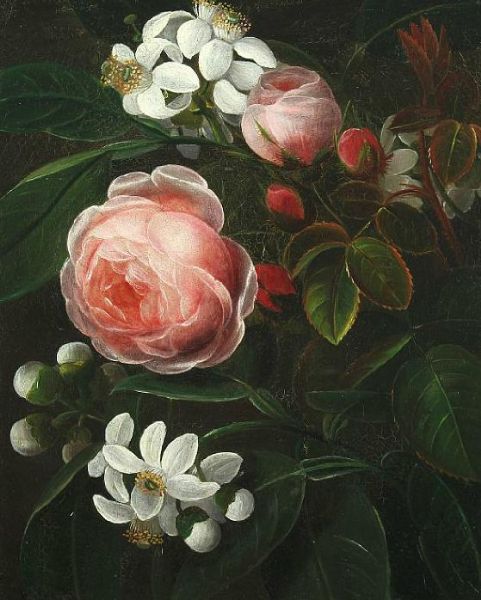 Pink roses and lemon flowers
